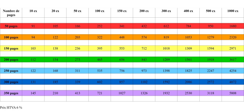 Simulation pour un livre au format A5, papier Munken Cream 90g, couverture souple en couleurs, finition mate. Prix affichés en euros.